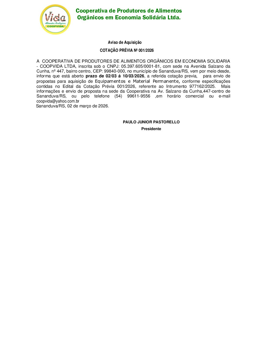 Com o apoio de movimentos sociais e sindicatos da região norte do RS, a Coopvida Fundada em 11 de junho de 2002 em Sananduva com o objetivo de fortalecer a agricultura familiar com a produção e comercialização de alimentos de forma consciente. A comercialização começou em feiras e venda direta de hortaliças, frutas e grãos diversos a consumidores urbanos, expandindo depois para o fornecimento a programas institucionais. Esses programas ajudaram os agricultores a produzir de forma organizada, garantindo acesso a recursos e mercados. Hoje, a Coopvida mantém mercado próprio, participa de feiras e busca constantemente novos canais de vendas para a comercialização de seus produtos.